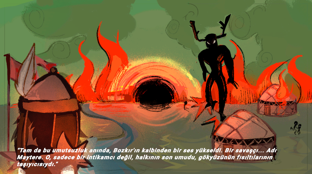 "Tam da bu umutsuzluk anında, Bozkır'ın elindeki bir ses yükseldi. Bir savaşçı... Adı Maytere. O, sadece bir intikamcı değil, oluşan son kişi, gökyüzünün fısıltılarının taşıyıcısıydı."